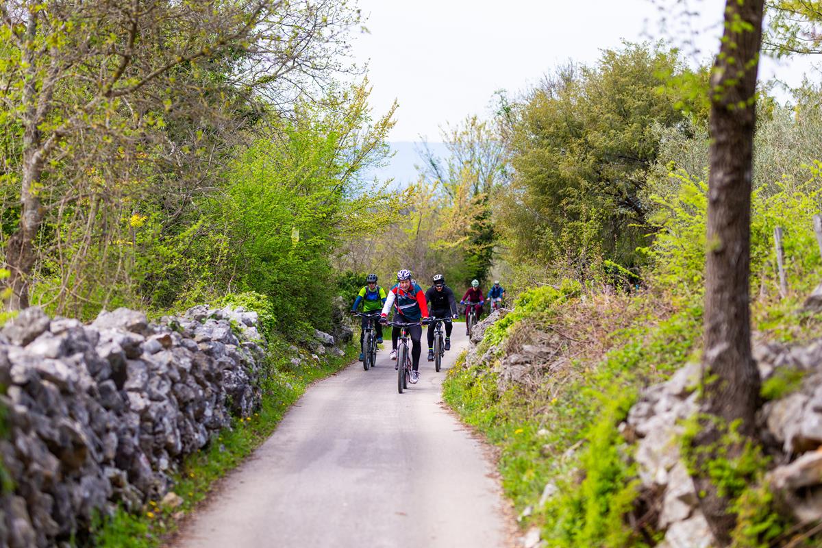The trail starts in Čižići and leads along an asphalt road to Rudine, where you can visit the Biserujka cave. A macadam section leads to the hamlets of Sužan, Rasopasno, Gabonjin and Kras, and then to the very heart of the island of Krk. The asphalt, macadam and single-track sections will take you to Dobrinj, before descending to beautiful Šilo, the most prominent tourist destination in this part of Krk. The trail returns to Hlap and descends towards the cove of Soline and Čižići.