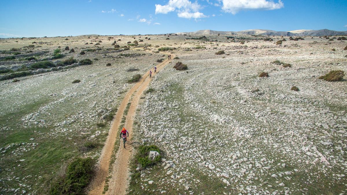 Before starting off, check the truly magical viewpoint in front of the Church of St John the Baptist, the patron saint of the parish and municipality. Winding through the shaded pine forest, you will reach a Moon-like plateau. The strong bora wind and other forces of nature have created a mesmerising landscape, while the view of the Velebit mountain and nearby islands will stay in your memory for good. A deep connection between humans and nature is reflected in kilometres-long dry stone walls, along which flocks of sheep graze peacefully. Picturesque wells, sheepfolds known as ‘mrgari’ and terrace-shaped drystone walls, built using an ancient construction method, represent a prime example of the local architecture. After the rocky surface of the Moon Plateau, a meandering downhill ride to luscious vineyards and pastures will surely take your breath away.