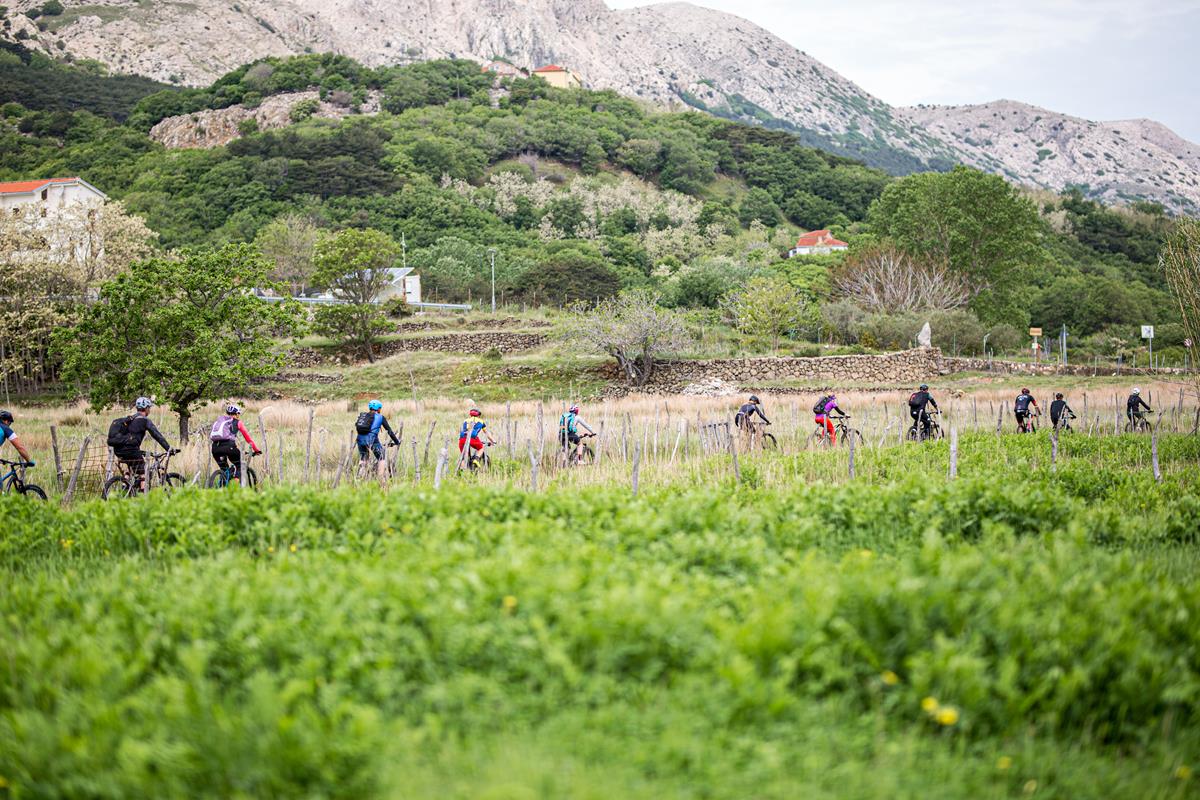 The trail will take you from the centre of Baška to the Zarok sandstone, where it turns upstream along the bed of Suha Ričina (also known as Vela Rika), the only perennial stream on the Adriatic islands. Thanks to Vela Rika, the Baška Valley once echoed with the sound of water mills, where locals ground wheat and made cloth. You will be cycling along the stone sculptures of the Glagolitic alphabet, one of the town symbols, and numerous flocks of sheep grazing on green pastures. The Goričica hill above the trail offers a stunning view of the fertile Baška Valley. There you will also find the oldest Marian shrine of Our Lady of Gorica. Upon reaching Draga Bašćanska, a right turn will take you to the main road to Baška. Make sure to visit the abbey complex of St Lucy in Jurandvor with a replica of the Baška Tablet, a precious piece of the Croatian cultural heritage.