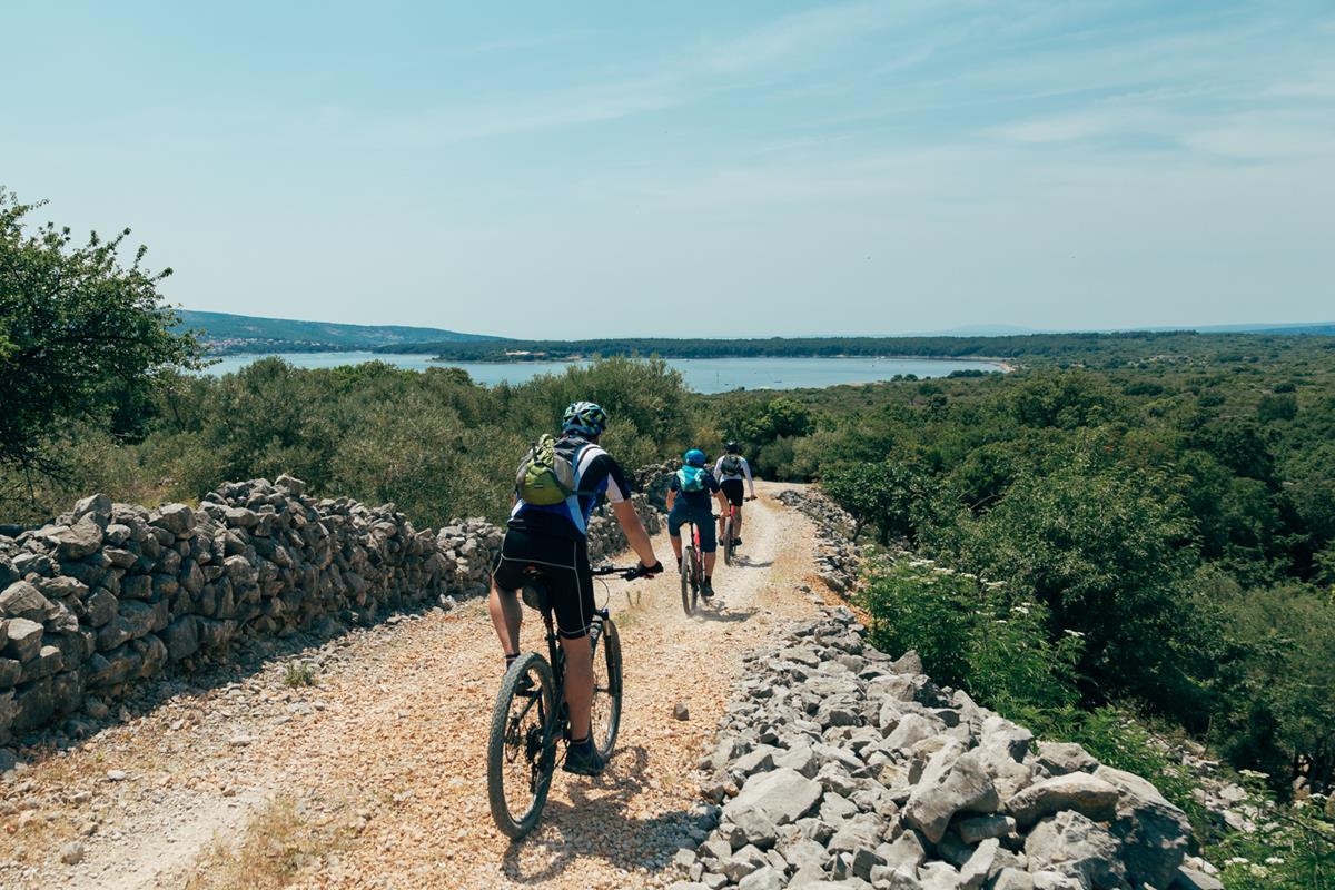 While passing through olive groves on the way to Kornić, cyclists are imbued with the timeless beauty, strength and resilience of the olive trees. At one point, they will be transfixed by the mesmerising view that unfolds towards the sea, the islet of Košljun, the pine-laden Prniba peninsula and the nearby settlement of Punat. After arriving in Kornić, you can visit the Parish Church of St. James the Great, which was finished in the mid-19th century and physically bookends the Krk Camino route, as well as the Kornić Ethnographic Heritage Collection – Kornić Folk House, which depicts life in the country from a hundred years ago. The collection was entered into the registry of the Museum Documentation Centre, which consists of more than 700 exhibits. A cooper's workshop, tools for farming and cattle breeding, equipment for making cheese and storing oil, as well as a small collection of scales, are displayed on the ground floor. A wood-fired oven is exhibited on the stone terrace – “balatura”. In the living quarters on the first floor, you can see, among other things, a traditional kitchen with a hearth, water containers, a manual corn grinder, kitchenware shelves, religious folk paraphernalia, a collection of musical instruments and folk costumes, with bedclothes displayed on the second floor. After cycling further into the Ponikve area, the neatly arranged olive groves and the “gromače” and “gomile”, the most common forms of dry stone wall architecture, give way to dense greenery and a forest offering pleasant shade, while acknowledging the proximity of the eponymous lake, from which the majority of the population of Krk Island, as many as 99.5 %, is supplied with water. Before returning to Krk, recreationists will pass through the village of Muraj and arrive near Lakmartin, where all lovers of local gastronomy can try traditional Krk sheep’s milk cheese at the Magriž family farm, including the variety enriched with the unique aromas of sage and immortelle, which are emblematic of Krk Island.