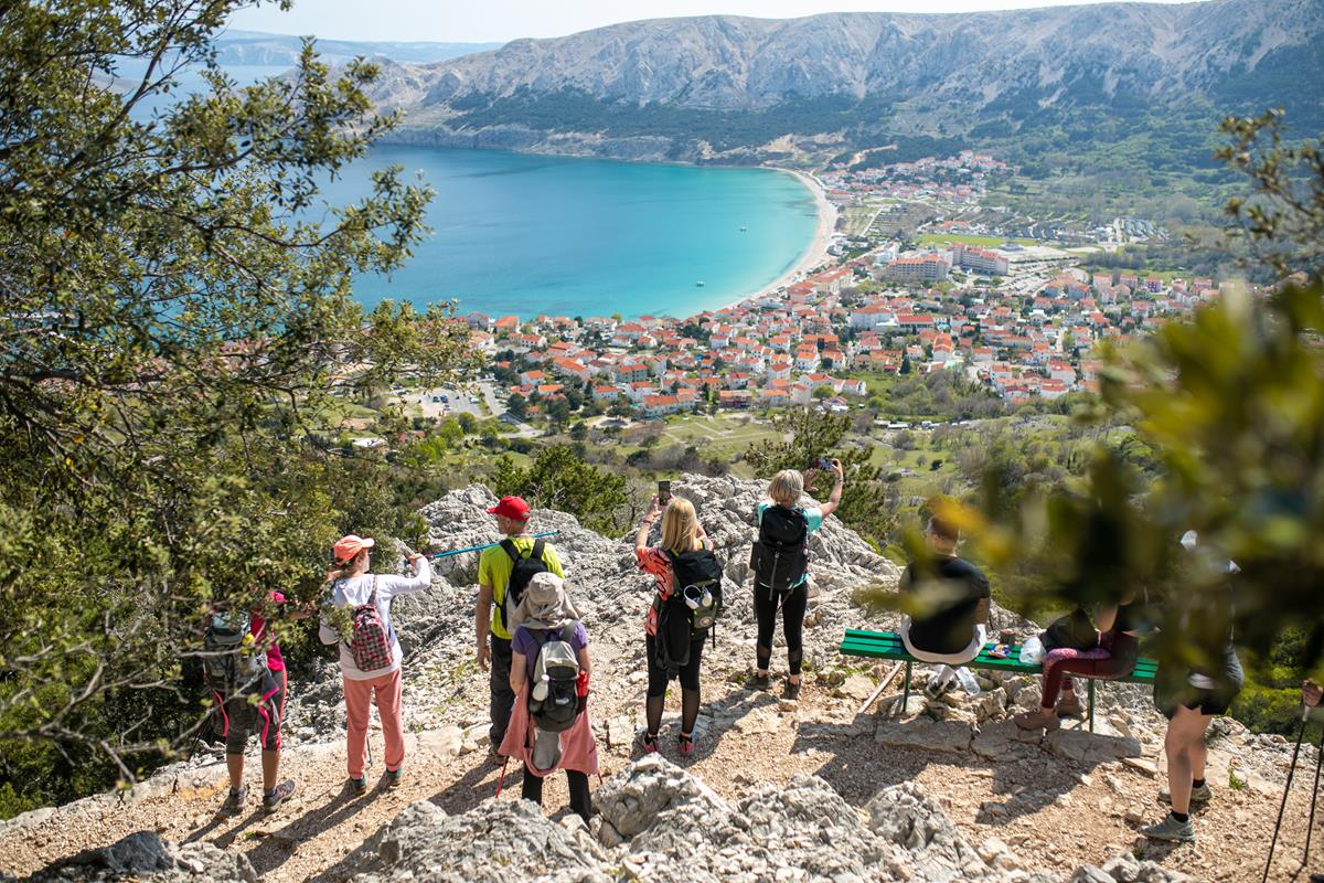 Jedna od najatraktivnijih i najpopularnijih pješačkih staza Baške „Put ka Mjesecu“ kreće iz samog centra mjesta te se najprije uzdiže uskom asfaltnom cestom u serpentinama do nekadašnjeg bašćanskog kaštela i crkve sv. Ivana Krstitelja. Pored crkve i mjesnog groblja zastanite na vidikovcu odakle su snimljene neke od najprepoznatljivijih fotografija Baške, s pogledom na Bašćansku dolinu, otok Prvić, morsko plavetnilo i Velu plažu. Zavirite i u ostatke ruševne crkve sv. Duha iz 13. stoljeća te nastavite širokom i dobro podzidanom stazom koja blago vijuga kroz borovu šumu. Na samoj stazi, koja se nekad zvala Cesta sv. Duha, postavljene su i klupe na kojima možete predahnuti i dodatno se nagraditi pogledom na Bašku i susjedne otoke.